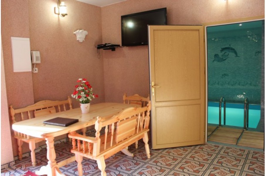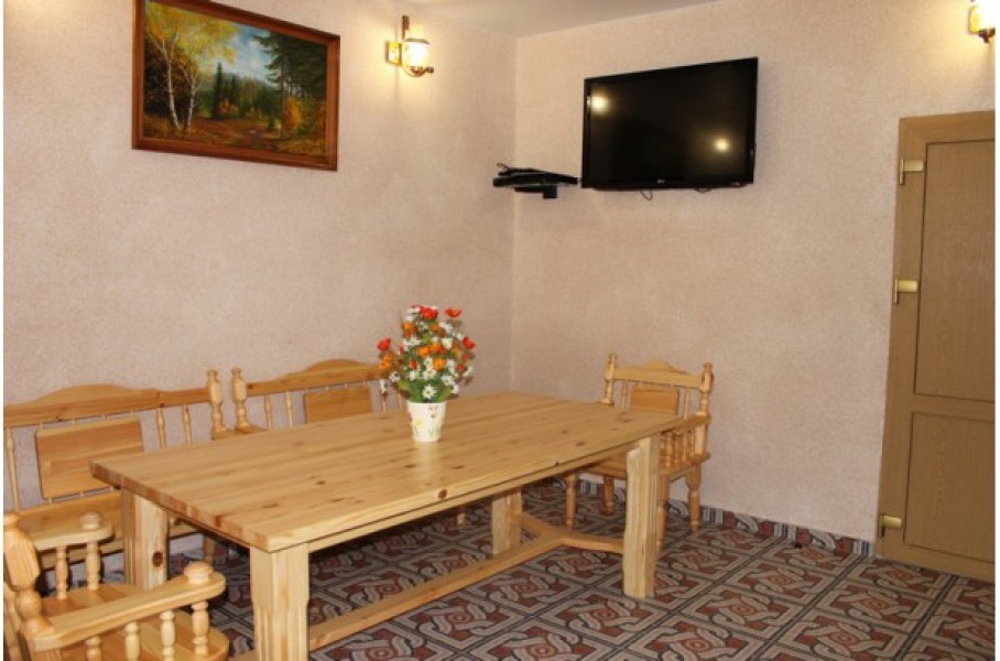 Люкс 4-х местный с сауной и бассейном Основных мест: 422000 ₽Площадь (м2): 62ОбогревательТелефонШкаф/ГардеробСобственный санузелТуалетные принадлежностиДушБассейнОбеденный столТелевизорWiFiЗабронировать